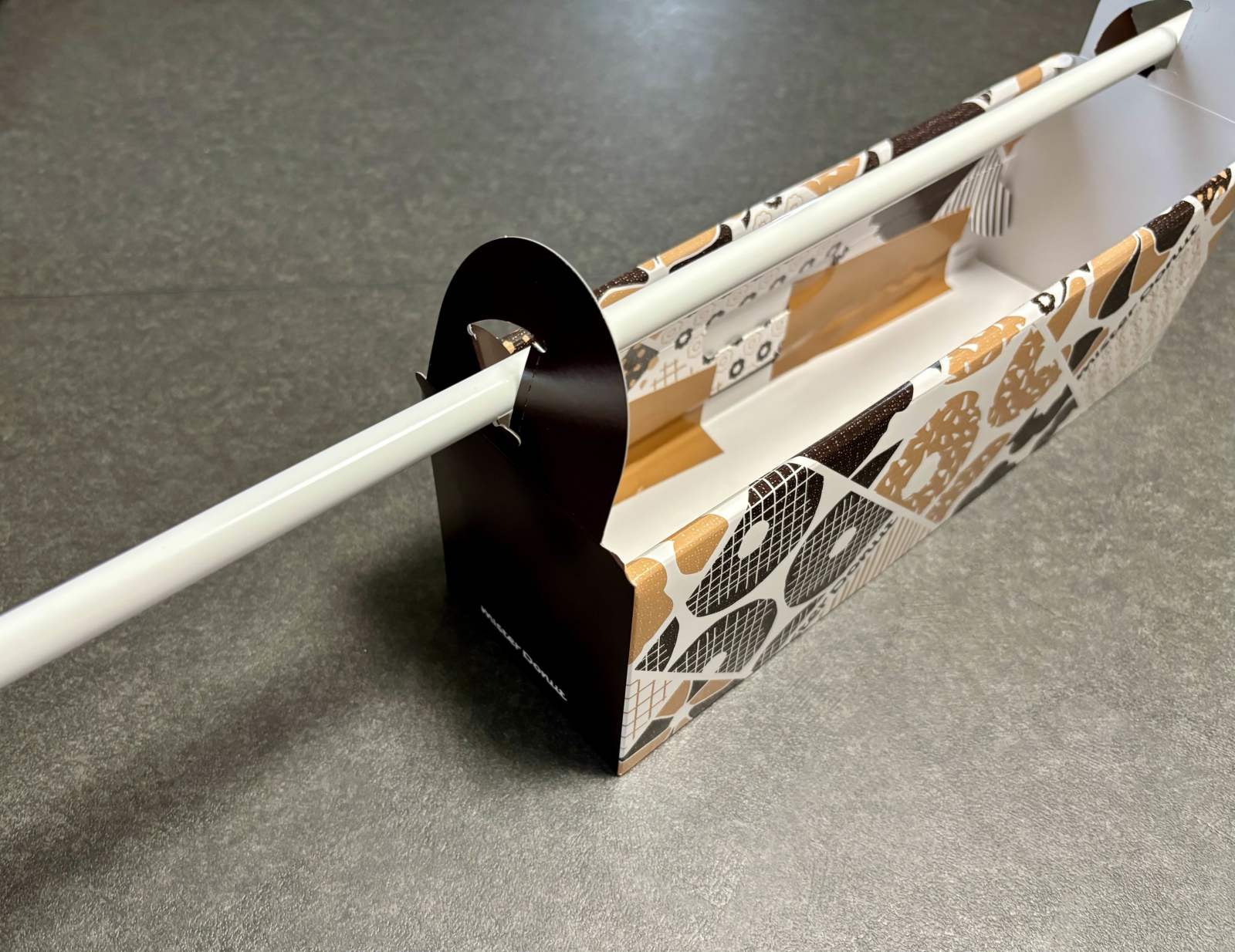 筆者は今回、ダースの箱(12個用)と65〜100cm対応の突っ張り棒を使用しました。