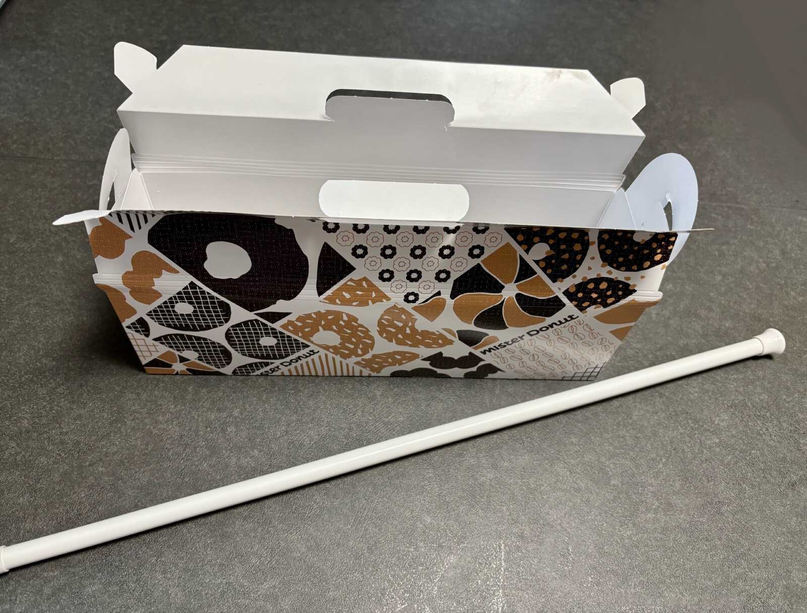 用意するものは、ミスタードーナツの箱と突っ張り棒です。