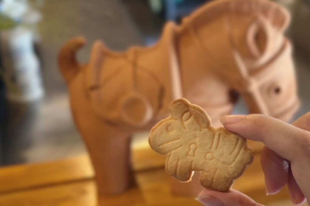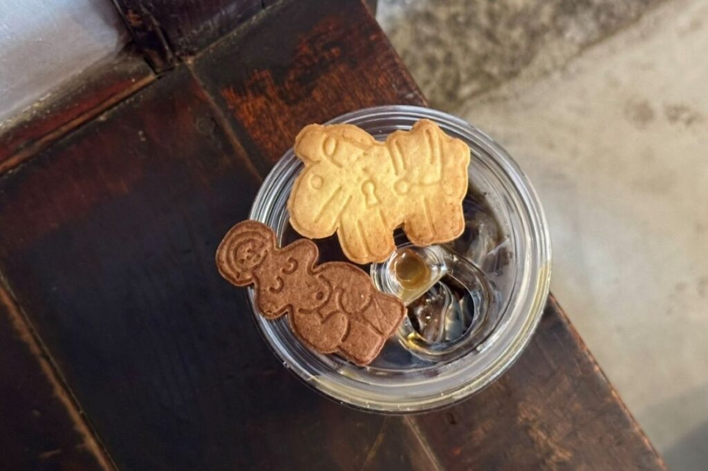 氷出しコーヒー600円とクッキー150円。クッキーはプレーンとココアの2種類でコーヒーとの相性抜群 店内で手作りされたハニワや土偶をモチーフにしたクッキーは、ユニークなデザインがそろい、思わず写真を撮りたくなるかわいらしさ。コーヒーやカフェオレと一緒に楽しんで。他にも、近隣にある八百屋の野菜を使用したサンドイッチやスコーンなど、モーニングや軽食に嬉しいメニューが勢揃い。京都駅近くの懐かしくも新しいコーヒースタンドで、ゆったりとした時間を過ごして。