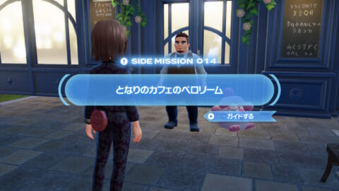 エテアベニューにある「カフェ・フォーカス」の前に立つグリムと会話し、ペロリームとともにカフェ・ソレイユへ向かうとクリア。