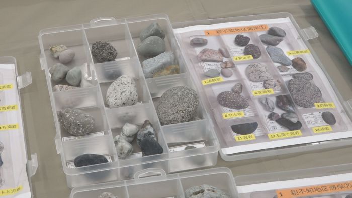 チョウやカブトムシ、植物の標本に、石まで……並んでいる標本は、すべて上越市内の小中学生が作ったものです。