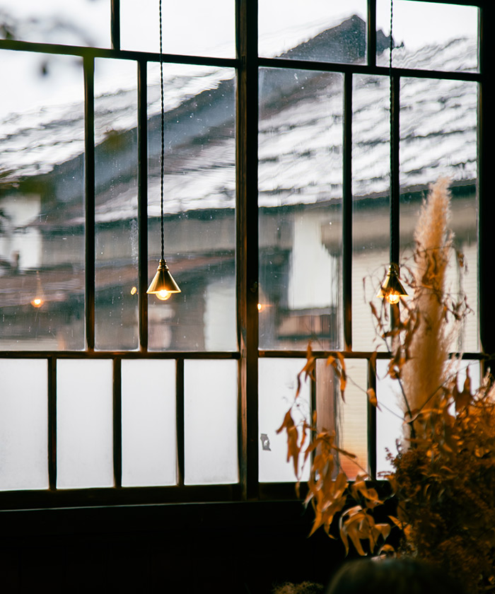 難波さん:僕が写真を取るのが好きなのもあって、どの席に座ってもいい写真が撮れるような空間を意識してつくっています。歴史のある建物なので、ここに置く机や椅子も古いものがいいなと思って、県外の古道具屋さんを回って集めてきました。大きな窓に使われているガラスも当時のまま、ひとつひとつ模様の違いを楽しんでもらえたら嬉しいです。