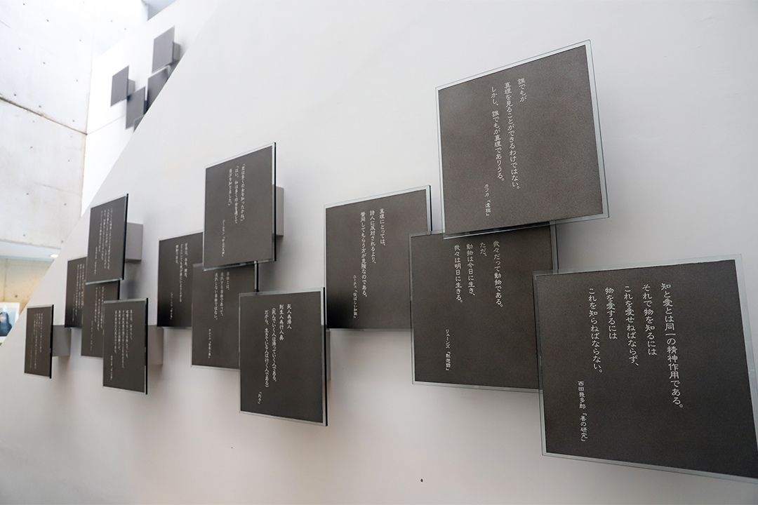 中に足を踏み入れると、壁一面にずらりと並ぶ哲学の言葉の数々が迎えてくれます。