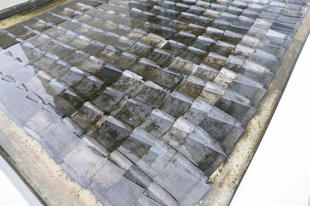 池の中をよく見てみると、なんと屋根瓦が…!