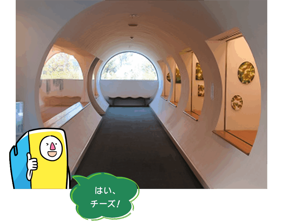 奥へ進むと、不思議な形をした半円窓が目に飛び込んできます。どこか未来的な雰囲気で、インスタ映えスポットとしても人気の場所なんだそう。晴れた日には窓が海のように輝き、写真映えは間違いなし。