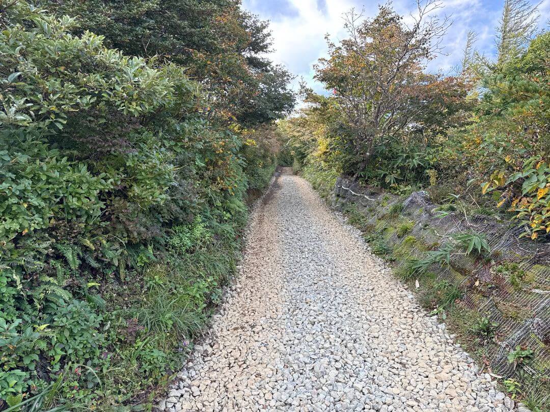 予定では2時間ほどで下山できるはずだったのだが、雨上がりだったこともあって路面が荒れており、歩きにくいことこの上ない。同じルートをたどる人もほとんどなく、「選択ミス」の言葉が脳裏をよぎる。後日登山アプリYAMAPを見ると、6月に同じルートで10メートル先にまるまる太った大きなクマと出会ったが逃げてくれたので無事だったというリポートが掲載されていた。遭遇しないでよかった。