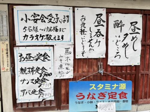 昼呑みOK! ランチは親子丼やサンマ定食があるのね。 そして鰻が推しなのかしら。
