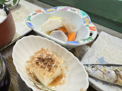 お煮しめと冷奴って酒もってこい! それに加え スクランブルエッグとトマト。 どれもこれも、おふくろの味で食べながら泣きそうになりました。ちなみにサンマ焼くのに15分ちょうだいって言われたので、信用できる店だと思いました(生からジワジワ焼いてる)。