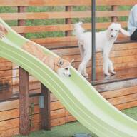 初めてウォータースライダーに挑戦した『短足の犬』→あまりにも可愛い『ジャンプの瞬間』が100万表示「芸術点満点」「美しい…」と反響
