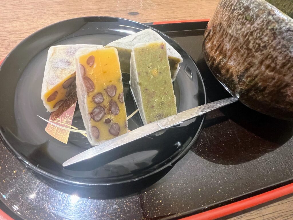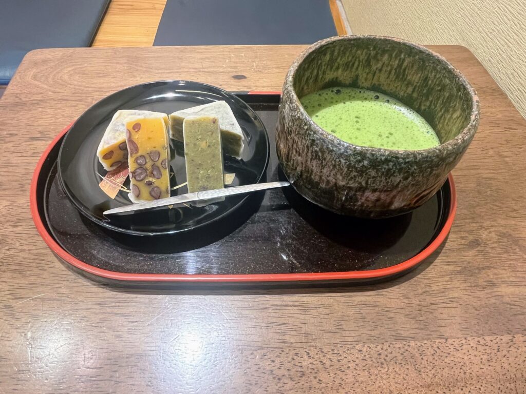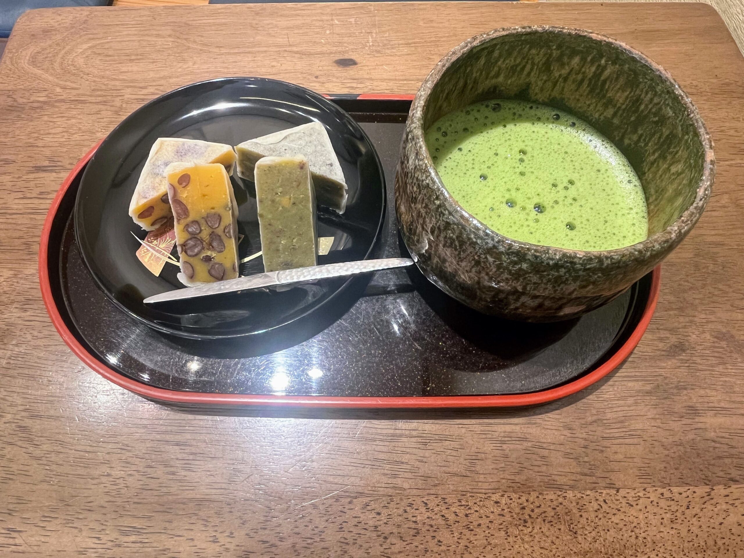 注文してから丁寧に点てられる抹茶と一緒にいただくきんつばは、甘さ控えめで非常に食べやすく、あっという間に完食してしまいました。