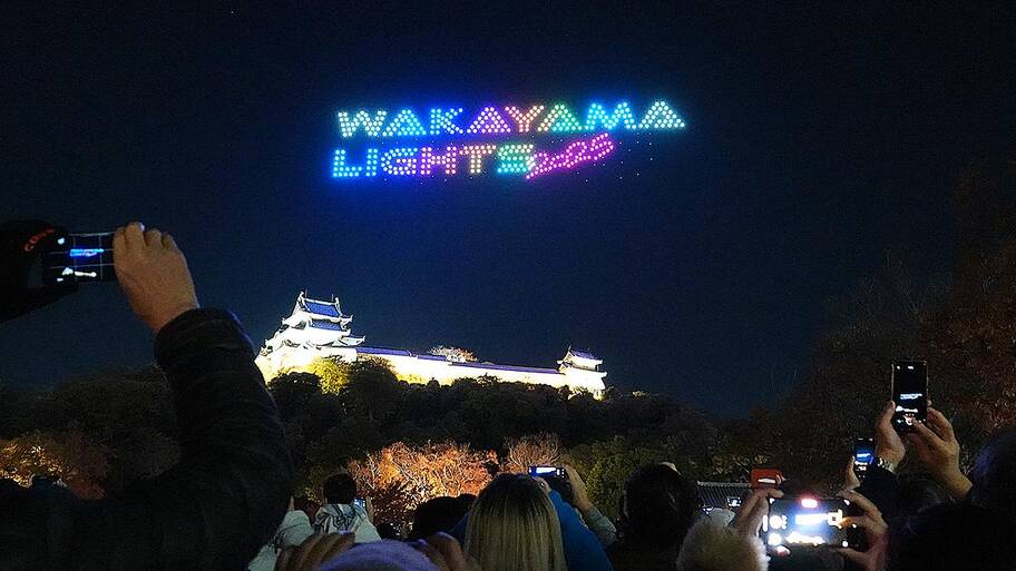 和歌山城天守閣上空でドローンショー「WAKAYAMA LIGHTS 2025」