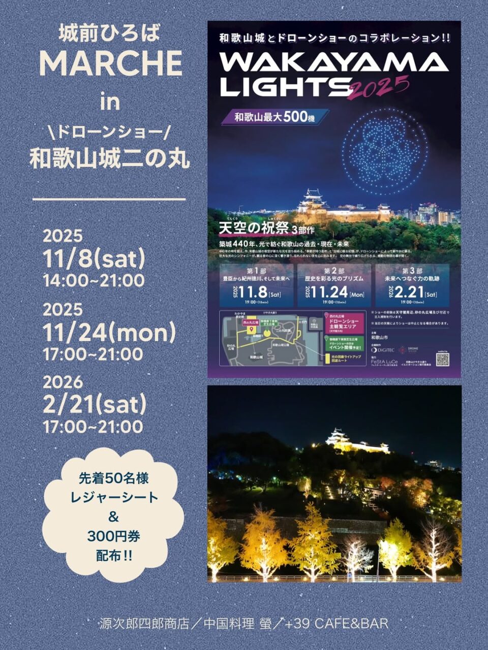1 WAKAYAMA LIGHTS 20251.1 昨年を超える500機のドローン1.2 日時2 「~光の回廊~」も特別バージョンに3 城前ひろばマルシェもお楽しみに