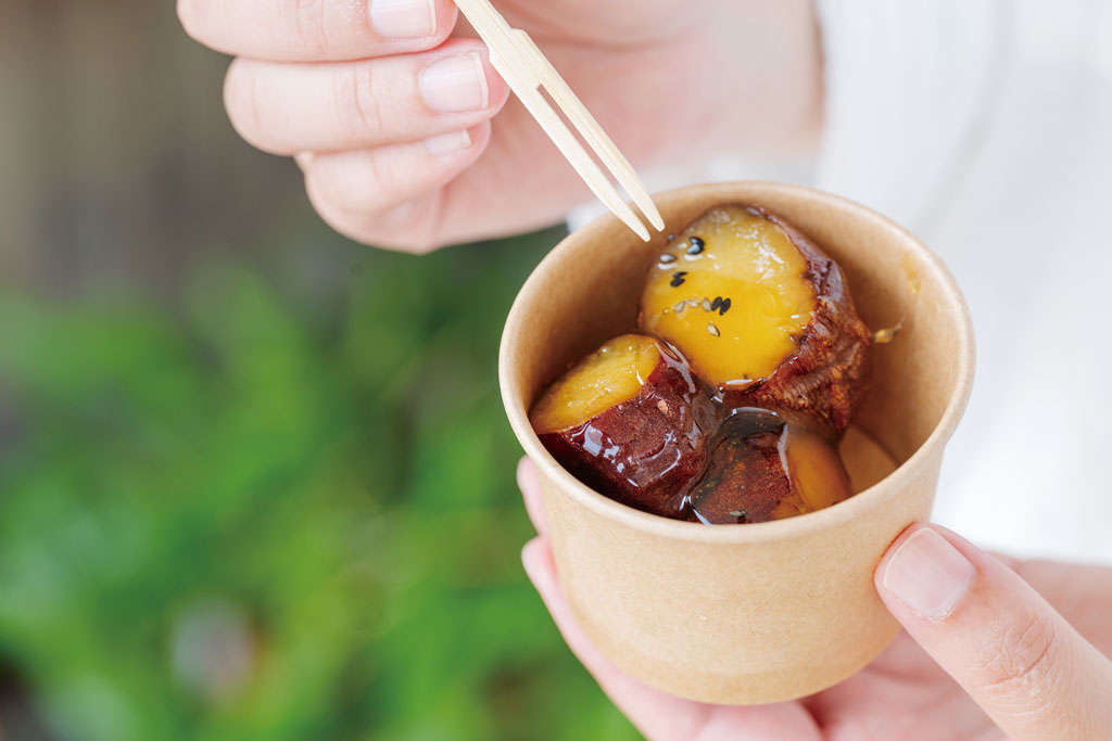 今後は積極的にイベントに出店し、「ひやとろ大学芋」3個入り 300円のテイクアウトも展開していく。芋の栽培に適した大洲市上須戒(かみすがい)地区の耕作放棄地を活用し、地域貢献にもつながっている。