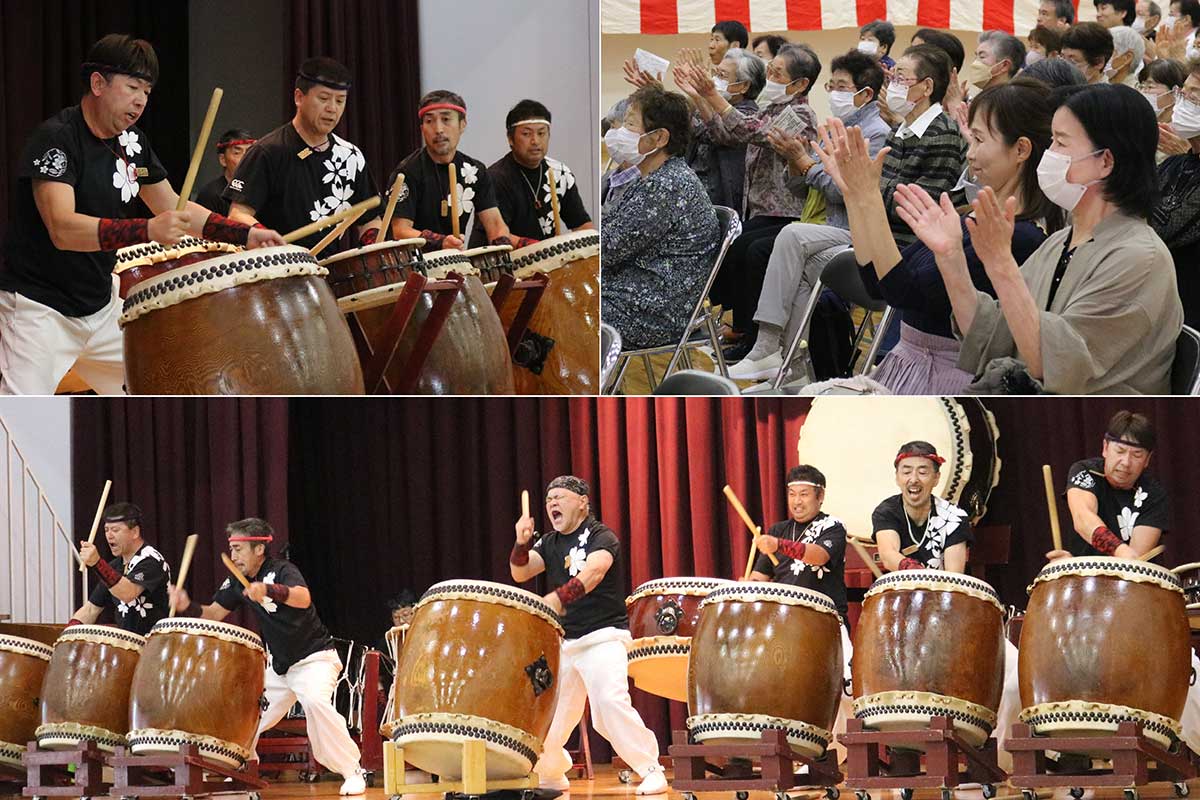 講話の後は住民お待ちかねの郷土芸能の披露。今や市内外のイベントに引っ張りだこの同町本郷の「桜舞太鼓」(鼓舞櫻会)が「神楽」「櫻響」「騎馬太鼓」など全5曲を演奏。地元が誇る芸能に盛んな拍手が送られた。過去にも招かれるなど唐丹住民らと深い絆を結ぶ同市鵜住居町出身の民謡歌手、佐野よりこさんは「釜石小唄」「南部俵積唄」「大漁御祝い」など6曲を歌って20回目の大会に華を添えた。