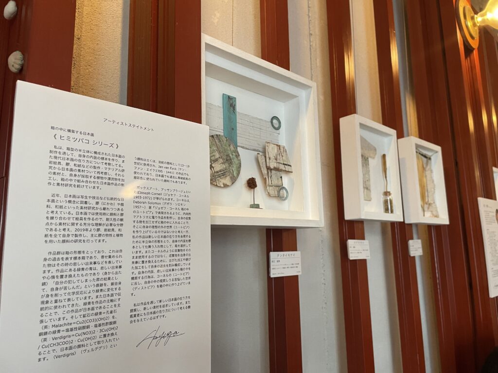 「サザナミコーヒー」に展示されていたのは、大阪在住のアーティスト・鈴江龍雅さんによる「ヒミツバコシリーズ」。箱型の日本画という独創的な作品を、海外からの来客も多いサザナミコーヒーで眺めること自体がなんだかとてもアート。オーナーの沢田さんは「反響は大きく、アーティストとも意気投合。コラボイベントの約束もしました」と話してくれました。