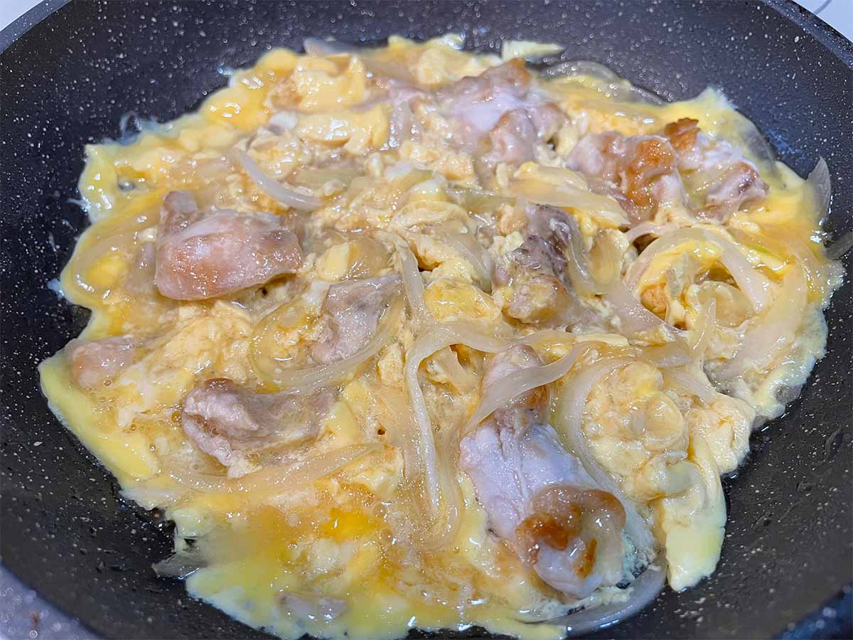 鶏肉は小さめにカットすると火が通りやすく、調理時間を短縮できます。卵液は半量ずつ加えると、ふわとろに仕上がり、好みの半熟加減に調整しやすくなります。