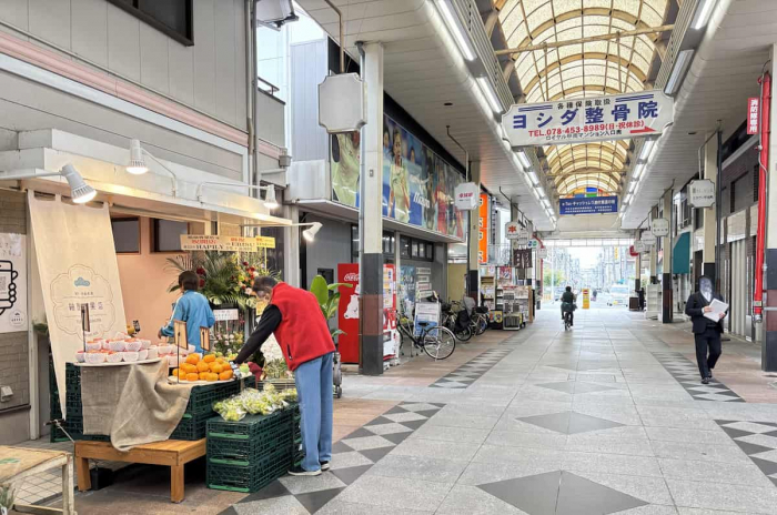 全長200mと比較的小規模なこの商店街には、実は「アプロ」「コープこうべ」といったスーパーのほか、個人店や生産農家直売の八百屋が既に2店舗あり、言ってみれば青果の激戦区!新店オープンにこの商店街を選んだ訳とは?またどんなお店なのか、取材に行ってきました。