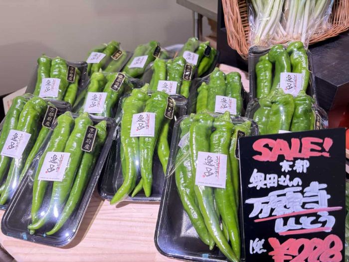 生産農家から直接仕入れるものもあります。こちらは京都府福知山市の奥田さんの「万願寺ししとう」で、甘くてジューシーなのが特長なんだとか!