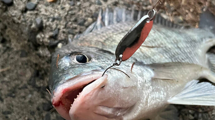 この釣法では魚が違和感なく食い込むので、とても強烈なアタリを楽しむことができます。オープンベールで糸を出しつつ、流れる潮に流し込むと弾けるライン!この瞬間は何物にも代えがたいものがあります!