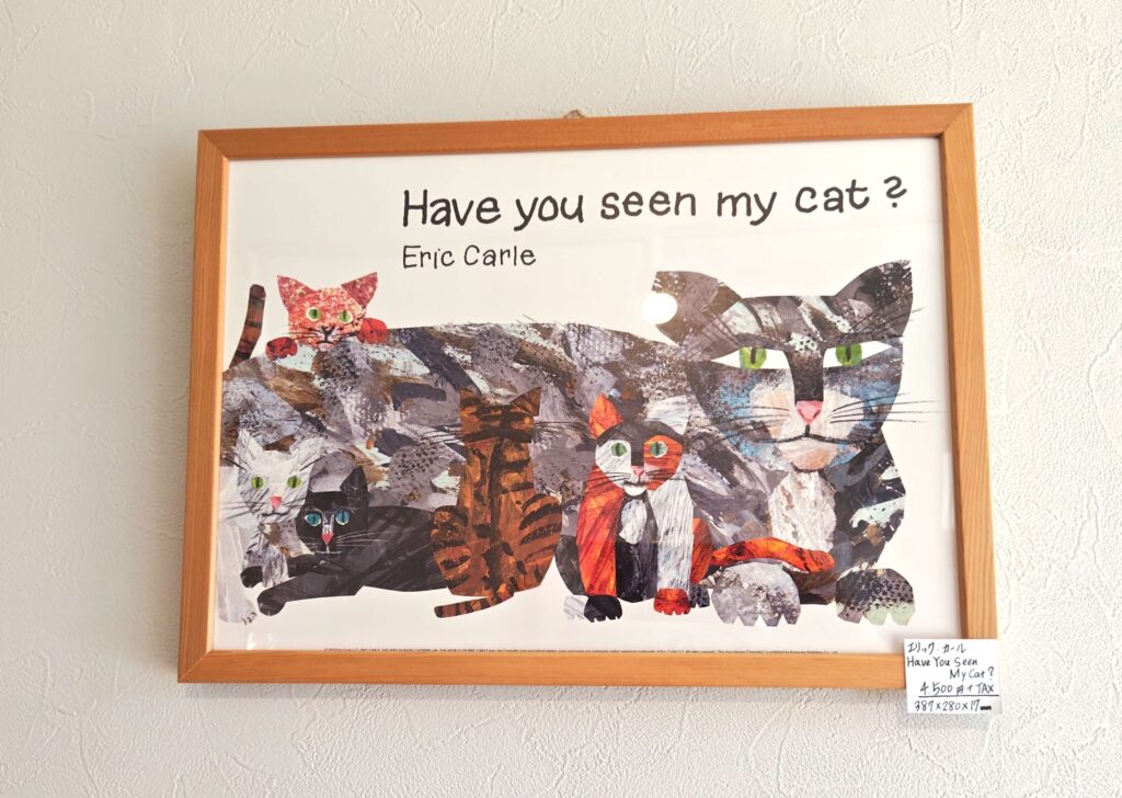 猫好きの筆者にはたまらない様々な柄の猫ちゃん達の絵。後ろを向いているキジトラ柄の猫ちゃんもかわいい。