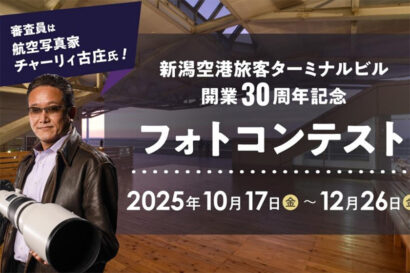 新潟空港ビルディング株式会社(新潟市東区)は、「新潟空港旅客ターミナルビル開業30周年記念フォトコンテスト」を開催する。募集期間は10月17日から12月26日まで。
