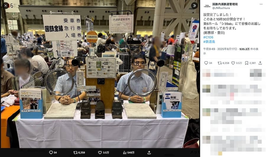そんな本格的すぎる“出札口”の姿に、Xでは「こーゆーの観たくてコミケに行くんよ」「あんたら凄いよ…」「なんという完成度」と驚きの声が続出。投稿は3.5万件を超えるいいねを集めています。