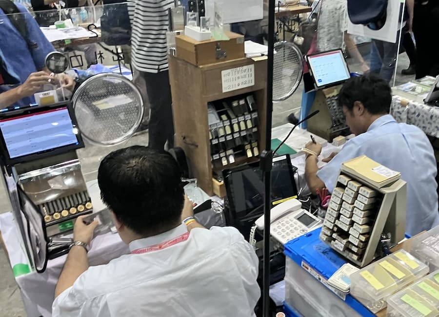 長机まるまる1つ分のスペースにアクリル板、ビデオフォン、大理石のキャッシュデリー(金銭受渡台)などが設置された光景は、もはや駅の一角。ブースの内側にサークルメンバーがキリッとした表情で構えているのを見ると、「ん? 業務中に転移した?」と錯覚しそうになります。