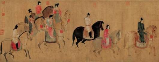 代表作に『虢国夫人遊春図』があり、同じく華麗な宮廷文化を描いた名画として知られている。