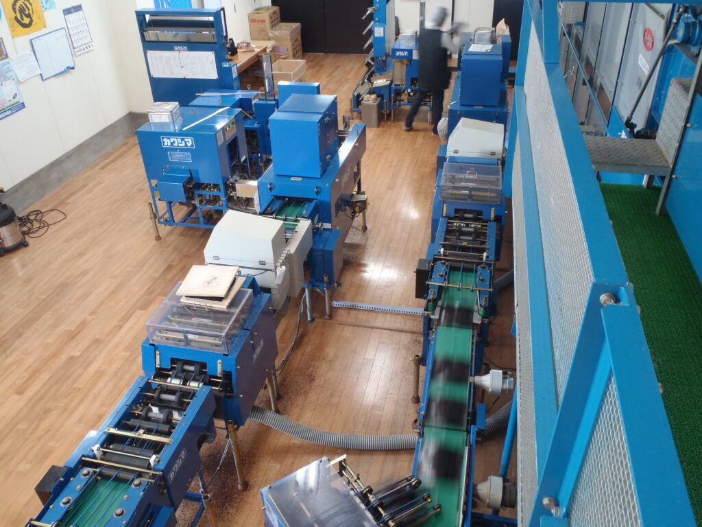 こうして収穫したノリは、加工場で海水に浸して保存。その後、細かく刻んで異物やゴミを取り除き、シート状に成形します。そして脱水、乾燥して板ノリの完成です。仕上げにもう一度異物検査を実施したのち製品化されます。