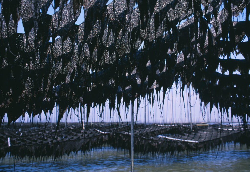 このように、支柱を立てて網を張り込むノリ養殖の方法は「支柱式養殖」と呼ばれ、九州や瀬戸内海など西日本で多く行われているそうです。