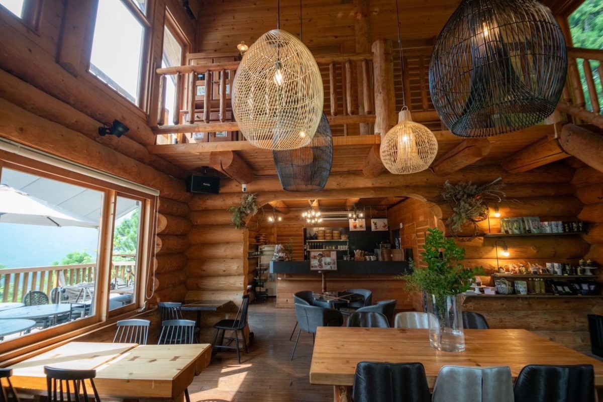 目の前に広がる景色の非日常感と、カフェのログハウス空間の温かさが相まって、心からリラックスできるひとときを過ごせること間違いなし。