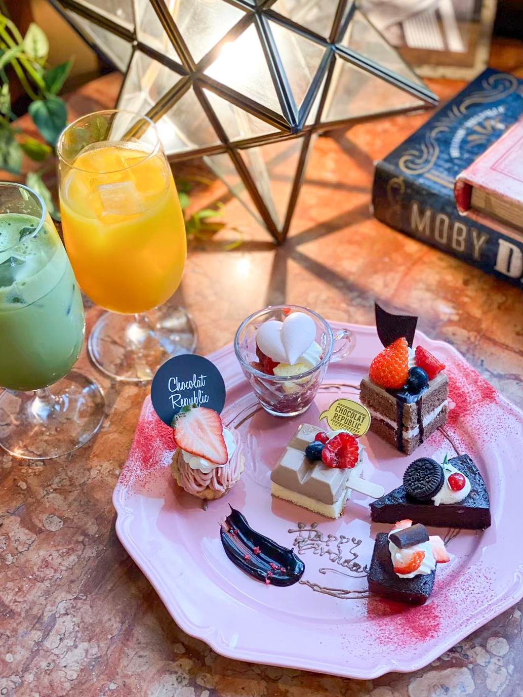 そのほか、「Chocolat Republic」では、色鮮やかなケーキが小ぶりサイズで1枚のお皿に集まった、見た目にも美しいスペシャルなプレートも人気。私が最初に訪れたのも、こちらのプレートに惹かれたのがきっかけ。プレートの内容は店舗や時期によって異なるので、訪れるたびに違った味を楽しむことができます。