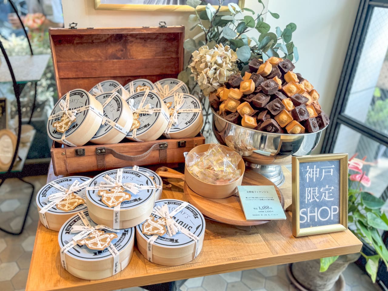 1階のテイクアウトショップでは、見た目だけでなく素材と味にこだわった数々のスイーツが並び、豊富な種類のケーキや1個単位から購入できる「フィナンシェ」、注文後にクリームを詰めてくれる「キングクリームパイ」(三宮本店限定・季節限定)、焼き菓子のセットなど、魅力あふれる商品がずらり。24:00までと夜遅くまでオープンしているのも嬉しいポイントです。