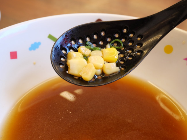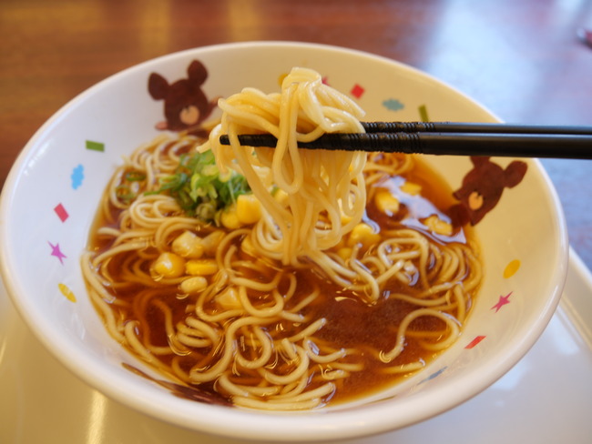 『お子さまラーメン』は、かわいい器とおぼんで登場。背脂の入っていないあっさりスープに、コーンのプチプチとした甘みが加わり、小さな子どもでも食べやすい味わいです。トッピングの調整も可能で、子どもの「食べたい!」に寄り添えるのも嬉しいですね。