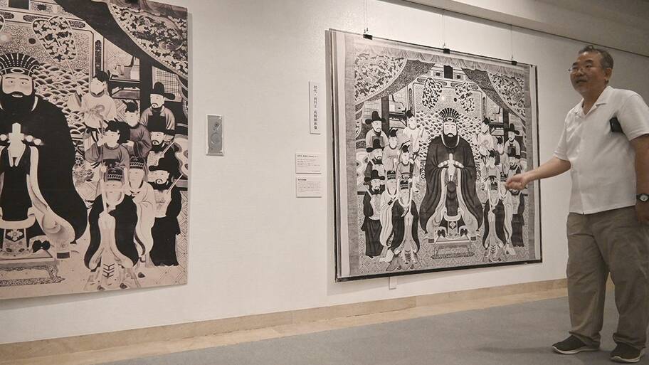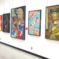加茂市出身の日本画家、橋本龍美の《見世物》(上写真)のように、見る人をゾクゾクさせる作品を展示しています。