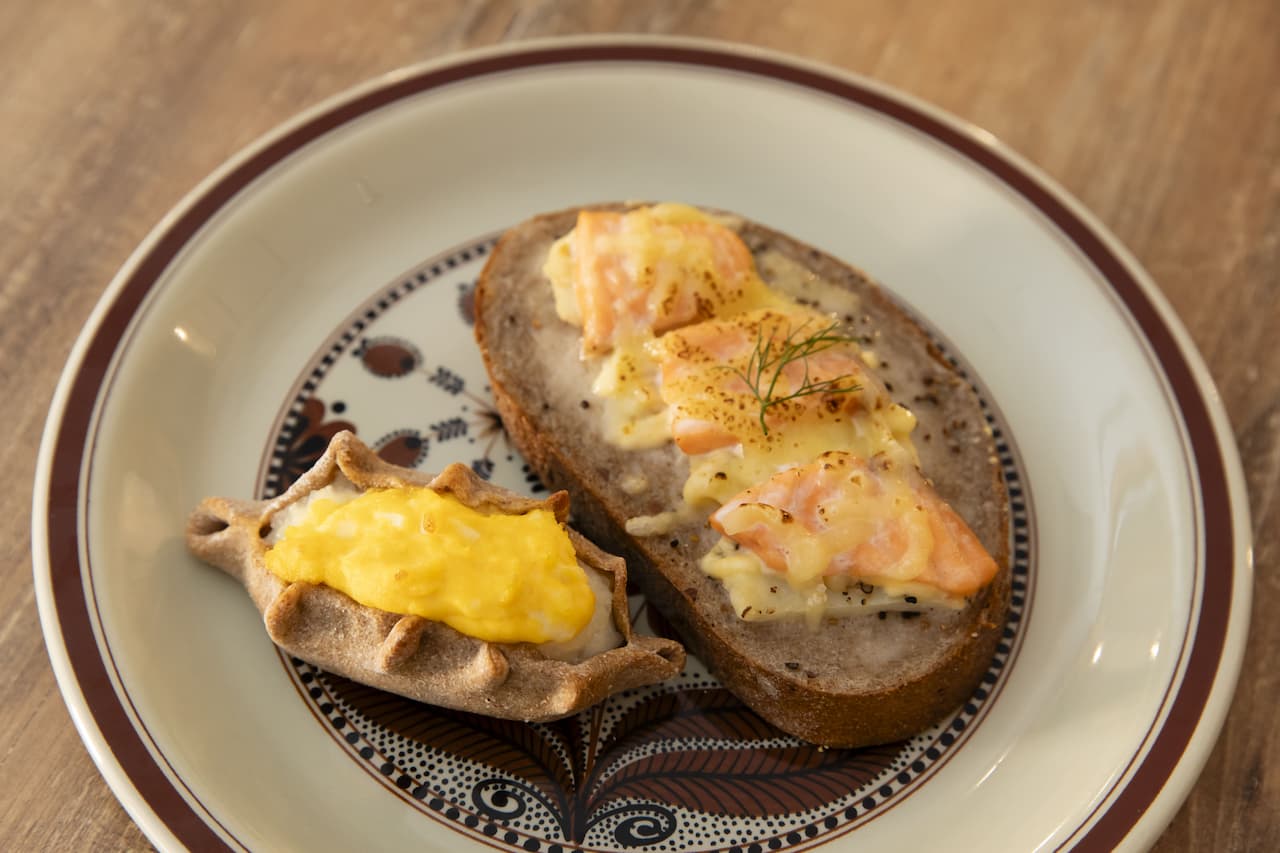 【Keitto】(左)「カレリアンピーラッカ」(251円)、(右)「サーモンタルティーヌ」(401円)