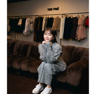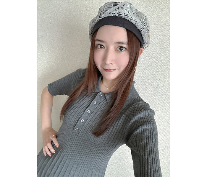 清水楓はベレー帽を被りグレーで統一された秋らしいファッションで