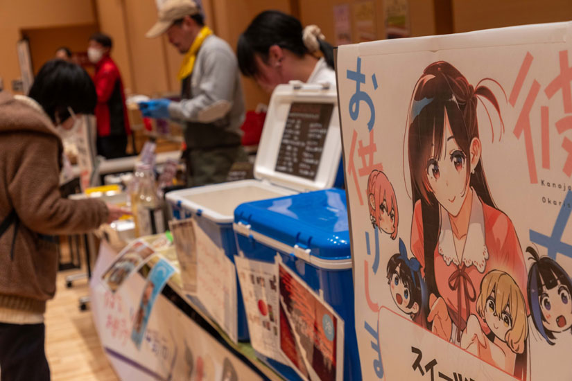 かのかりとコラボした6種類のオリジナルマンホールのお披露目。会場内で買い物をするとマンホールのデザインシールが1枚もらえます。