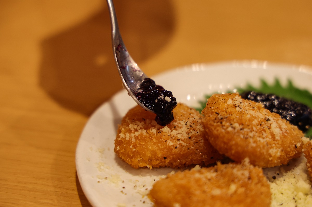 熱々のカマンベールチーズをサクサクの衣で包んだフライは、口に入れた瞬間にチーズがとろりと溶け出し、濃厚な旨味が広がります。