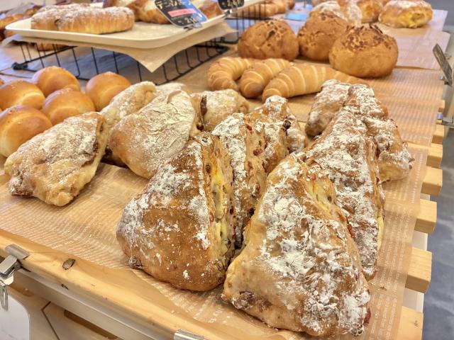 こちらの「チーズリュスティック」が筆者の推しパン!希少な道産小麦「キタノカオリ」を100%使用し、天然酵母のルヴァン種を加えて1日寝かせてから高温で焼き上げるというこだわりぶり。ゴロゴロ入ったチーズの程よい塩気と、しっとり&もっちもちの食感がクセになってしまいます。