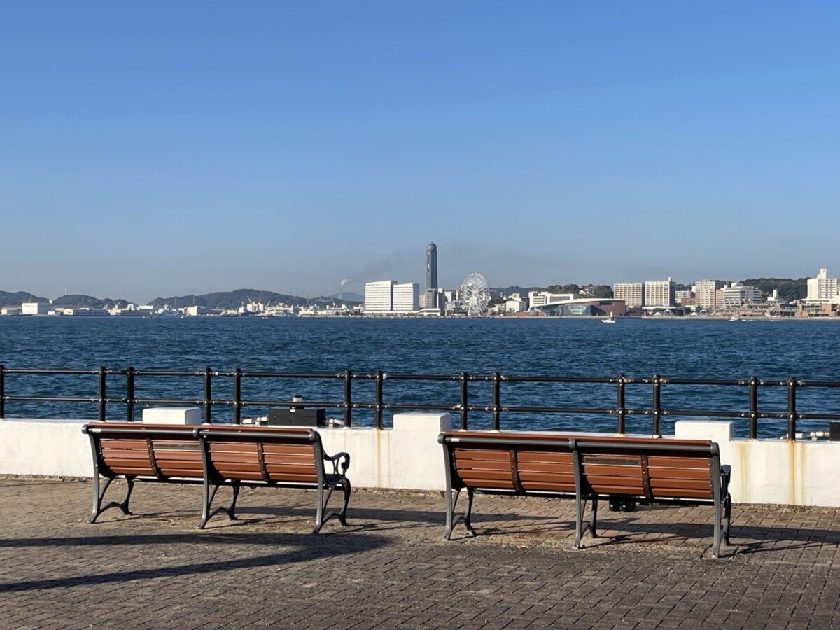 ノーフォーク広場には、ベンチもあり関門海峡も見渡せるのでゆっくり休憩することもできますよ。
