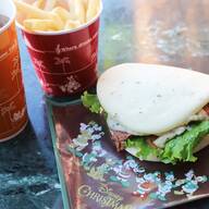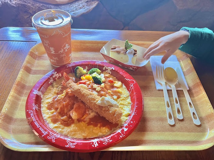 ゆっくり腰を落ち着けてエネルギーをチャージしたいなら、「グランマ・サラのキッチン」がぴったり。家族で囲むあたたかなクリスマスをイメージした「スペシャルセット」は、彩りも美しくボリュームたっぷりの「エビトマトクリームソースのかかったオムライスとエビフライ」に、「ピーカンナッツのケーキ」と「ソフトドリンク」が付いてきます。とろとろのオムライスに、サクサクのエビフライが抜群にマッチ。