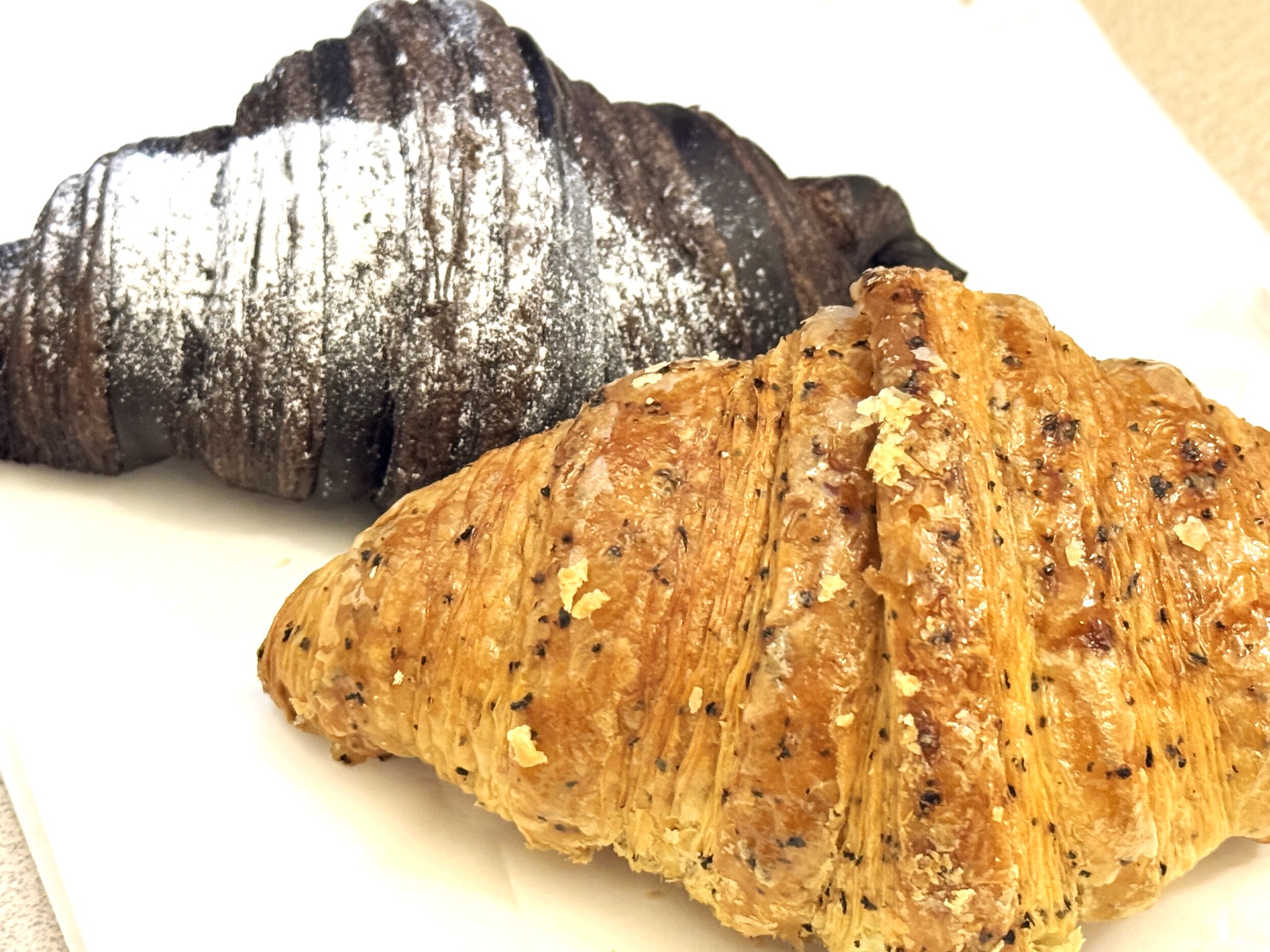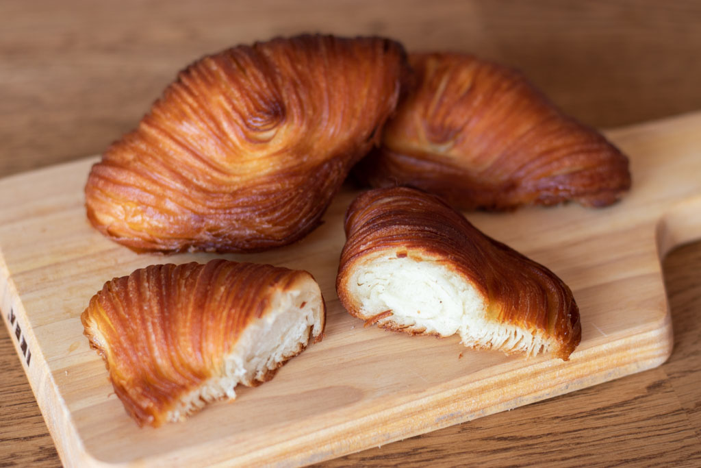 イチオシのクロワッサン。一般的なクロワッサンとは違う独特なフォルム。細かく切れ目の入った外側部分はバリバリで、中はもっちりした食感。バターの旨味がしっかり引き出されていて、1つ食べ切る頃にはもう1個食べたいと思わせてくれる特別なクロワッサンです。