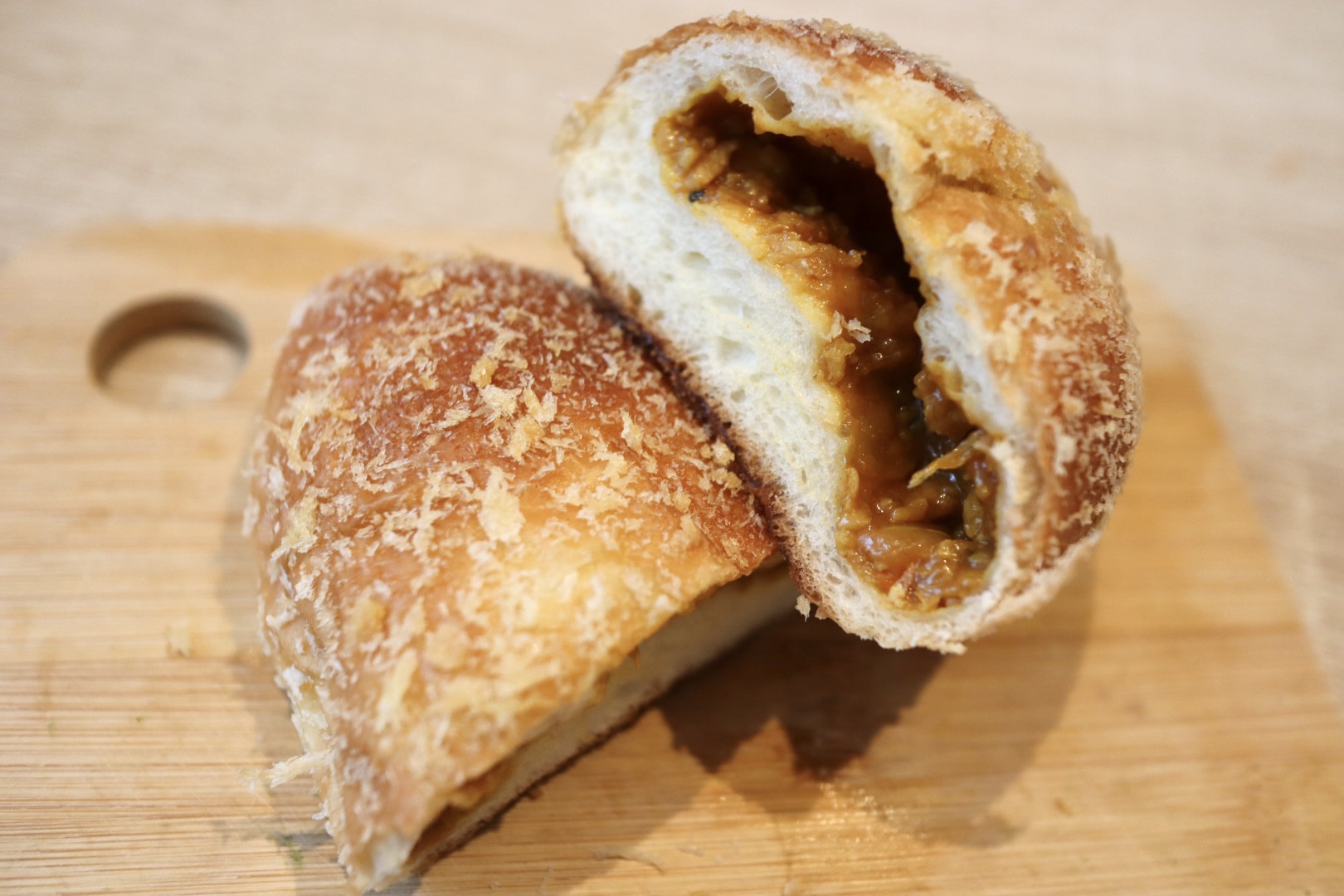 結構スパイシーなカレーですが、生地が少し甘めでバランスがよく、フワフワな生地にザクっと衣のアクセントが効いていてとても美味しいですよ。