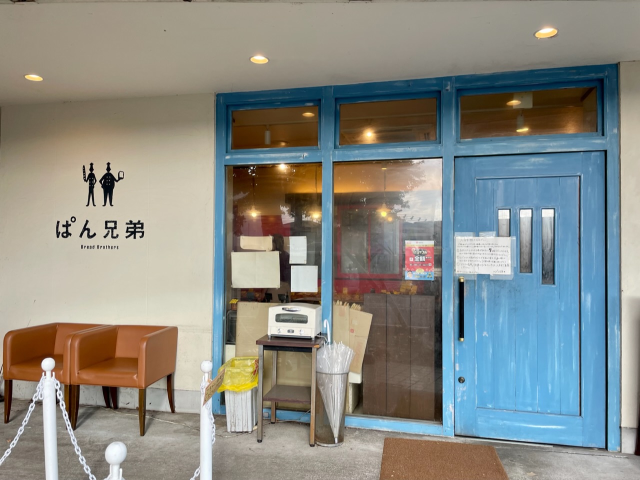 天白区・植田川沿いにある白と青の外観がおしゃれな「ぱん兄弟」さん。店舗の東側側面には専用駐車場が3台分あるので、車での来店が便利です。
