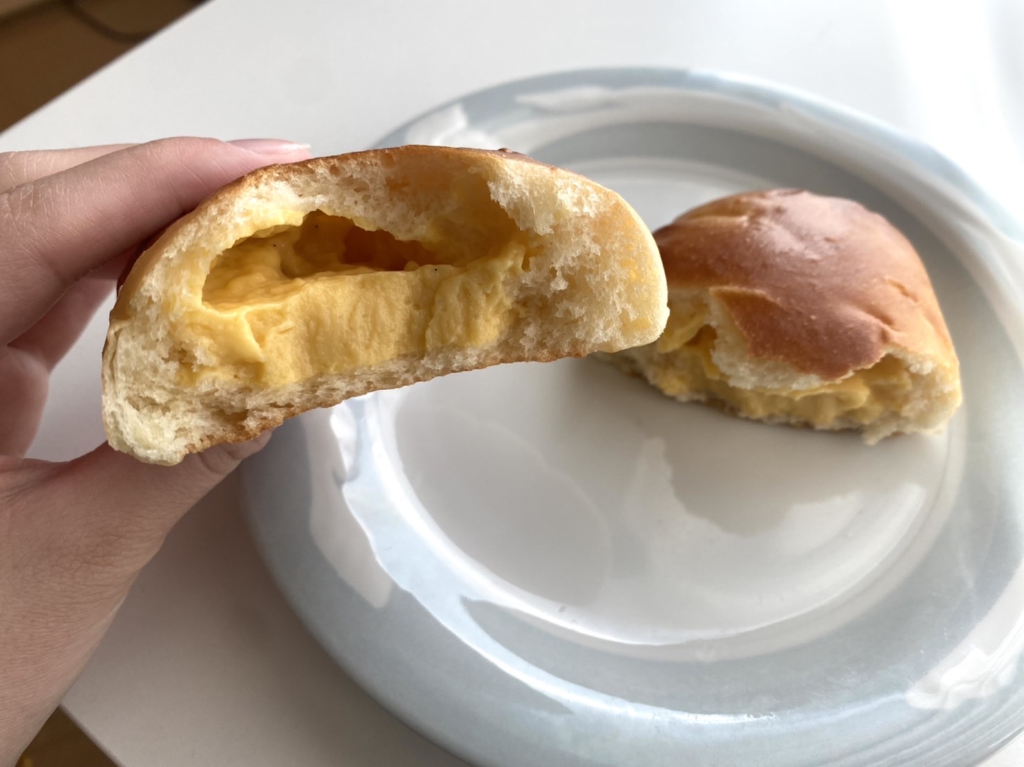 平飼い卵を使用したカスタードクリームは卵の風味を生かしたクリーミーな味わいが特徴。プルプルなカスタードクリームがたっぷりと入っていて、ソフト食感のパンとよく合います。