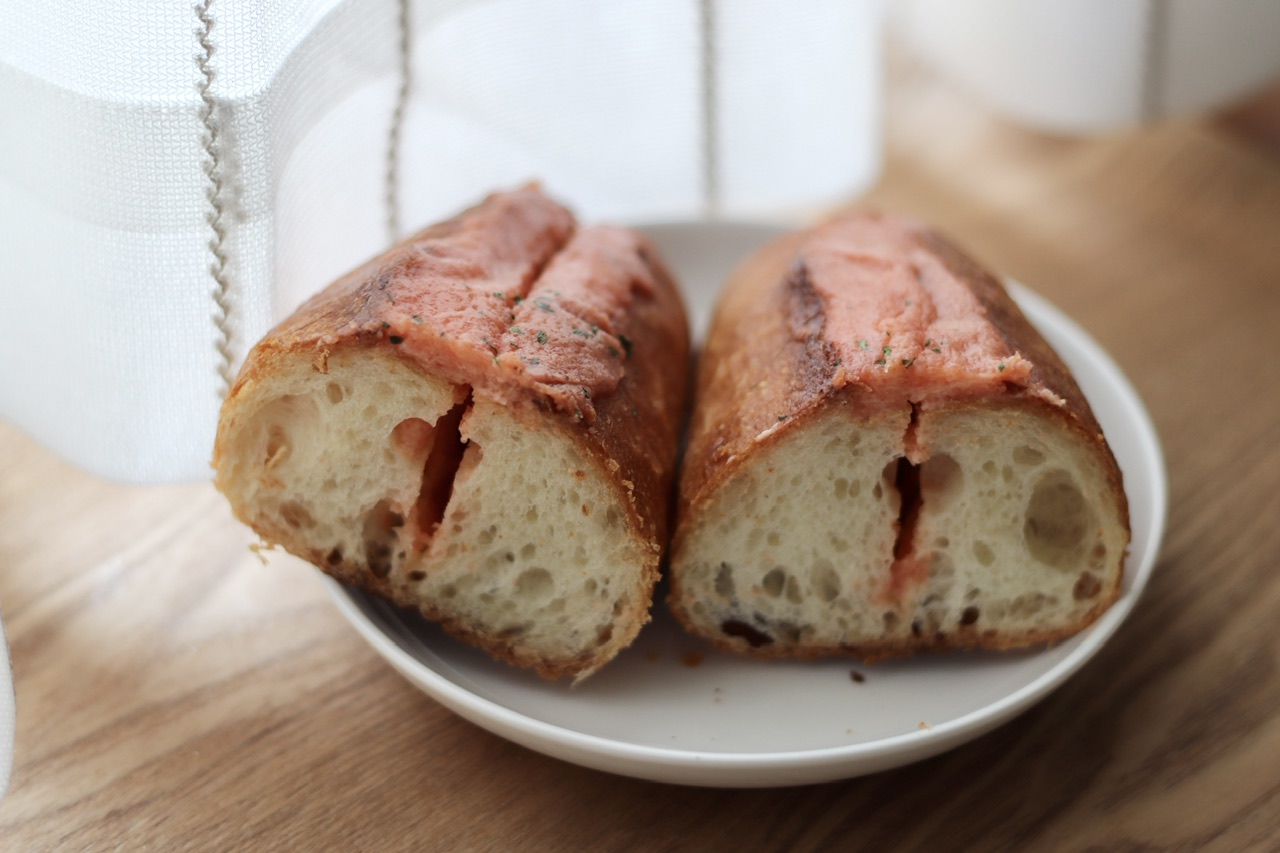 ファンも多い明太フランス。明太ソースたっぷりのヴィジュアルがそそります!少しピリ辛ですが、老若男女が好きそうなバランスの良いお味。結構ハードめなのが最高で、冷めてもパリパリモチモチ。大きいのでカットしてリベイクもオススメですよ。