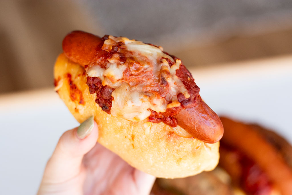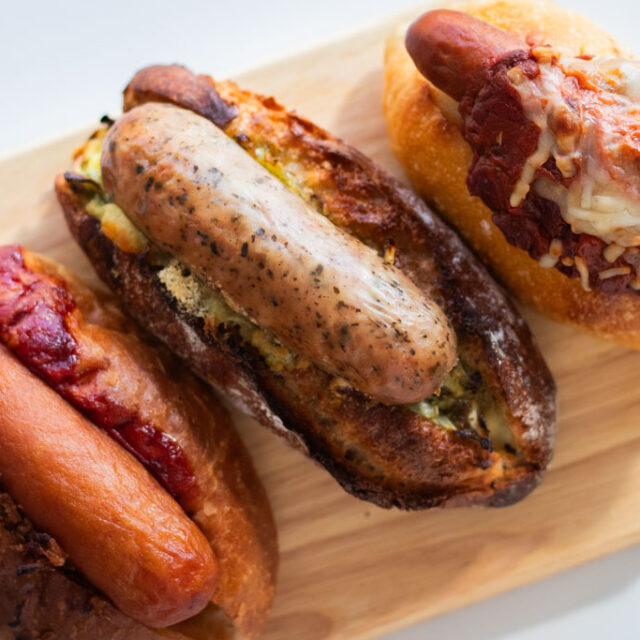 上に乗っているソーセージは、チリドッグのための特注チョリソーを使用!プリッと弾力のあるピリ辛ソーセージとフランスパンの甘みが相まってやみつきに。ボリューム感とビジュアルは数あるパンの中でも一番映えます!