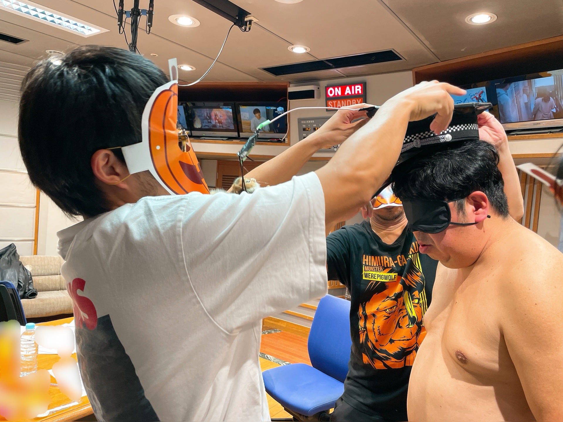 日村:え、なんか目隠しされて、あったかいもの着させられた。