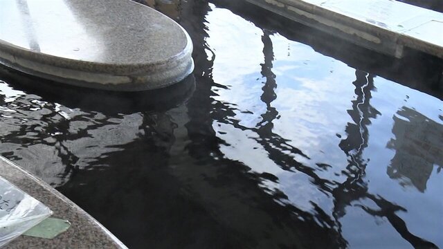 岩室温泉の特徴は、この底が見えないほどの黒い色のお湯!